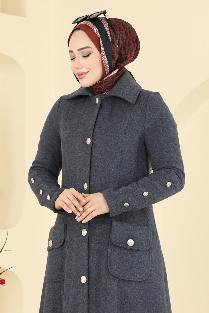 A Kesim Kaşe Pardesü - Antrasit Renk
