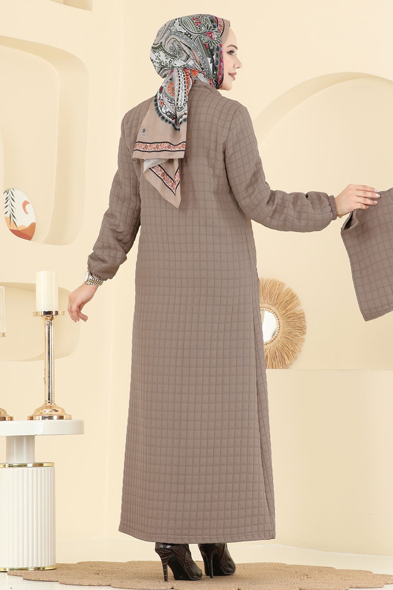 Removable Hooded Quilted Ferace is an ideal choice especially for autumn and winter seasons! Its washable at 30 degrees with a delicate wash feature, enhancing ease of use. The quilting ensures both style and warmth. Its removable hood adjusts to different weather conditions seamlessly. The front zipper and elastic cuffs offer practical use. The featured model is size 38 and side pockets add extra functionality.