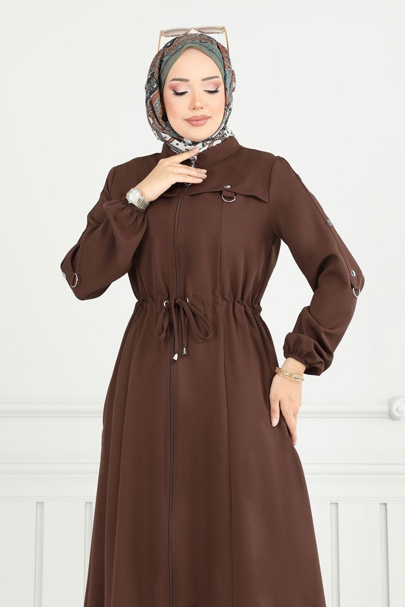 Product Feature : It is a new season hijab fashion product. It has a laced waist. The product has a Half Judge collar. Unlined. The product has a zipper at the From the front part. Pocket available. The cuff is rubberized. There may be a tonal difference in the product due to concept photo shoots.