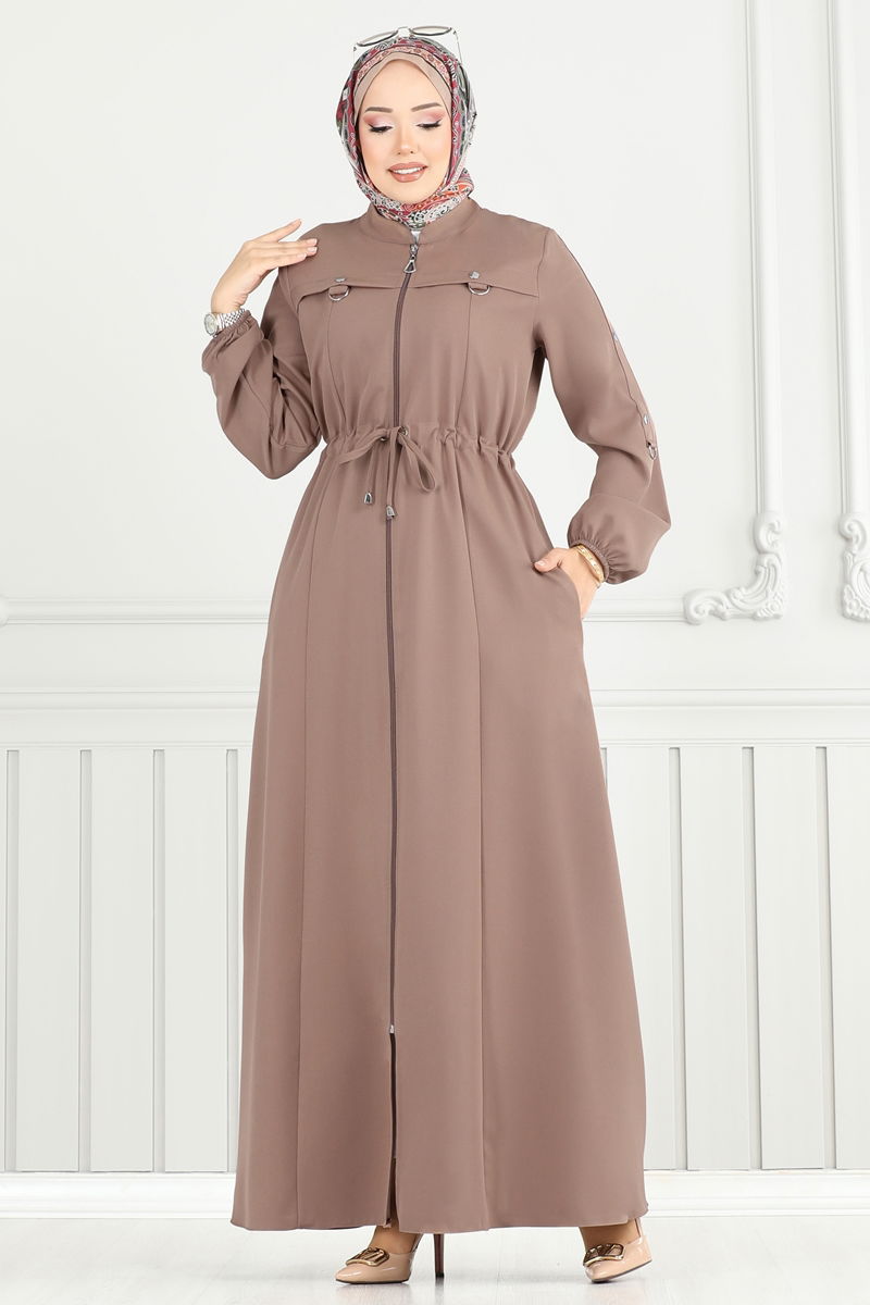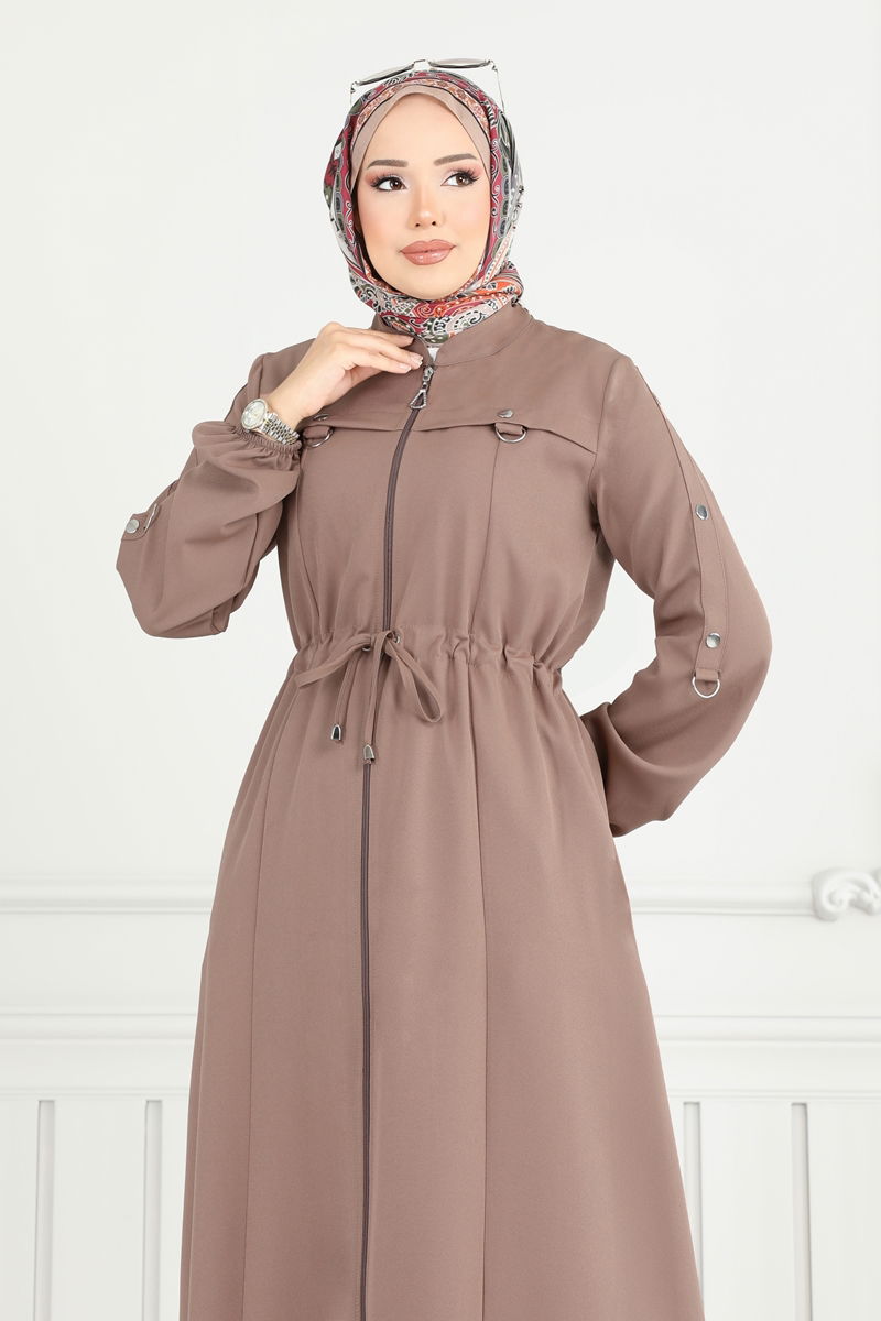 Product Feature : It is a new season hijab fashion product. It has a laced waist. The product has a Half Judge collar. Unlined. The product has a zipper at the From the front part. Pocket available. The cuff is rubberized. There may be a tonal difference in the product due to concept photo shoots.
