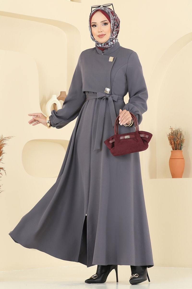 Offering both elegance and comfort, the Çıtçıt Detaylı Dabıl Ferace is the perfect hijab wear for all seasons. This ferace can be washed gently at 30 degrees and is made from durable Dabıl woven fabric. It features a high collar design and is unlined for a light and stylish look. The front zipper and snap details make it practical to use, while the elastic wrist cuffs ensure a comfortable fit. Side pockets add functionality.