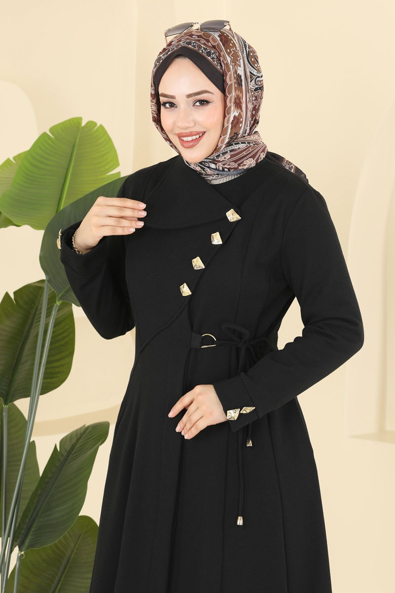 Product Feature : It is a new season hijab fashion product. There is a hidden pocket in the product. Front available buttons and hidden buttons available The product has side usable laces. The product has a asymmetrical double-breasted collar. Unlined. Cuff buttons are accessories. There may be a tonal difference in the product due to concept photo shoots.