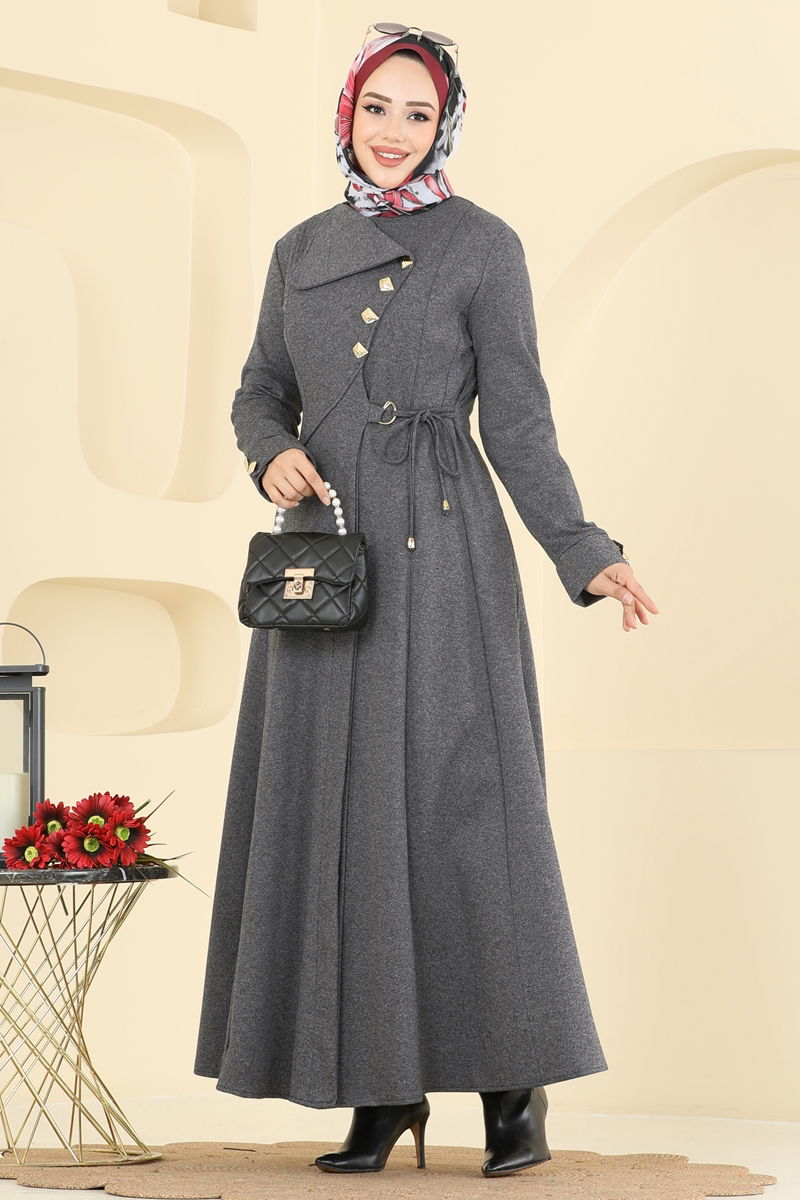 Product Feature : It is a new season hijab fashion product. There is a hidden pocket in the product. Front available buttons and hidden buttons available The product has side usable laces. The product has a asymmetrical double-breasted collar. Unlined. Cuff buttons are accessories. There may be a tonal difference in the product due to concept photo shoots.