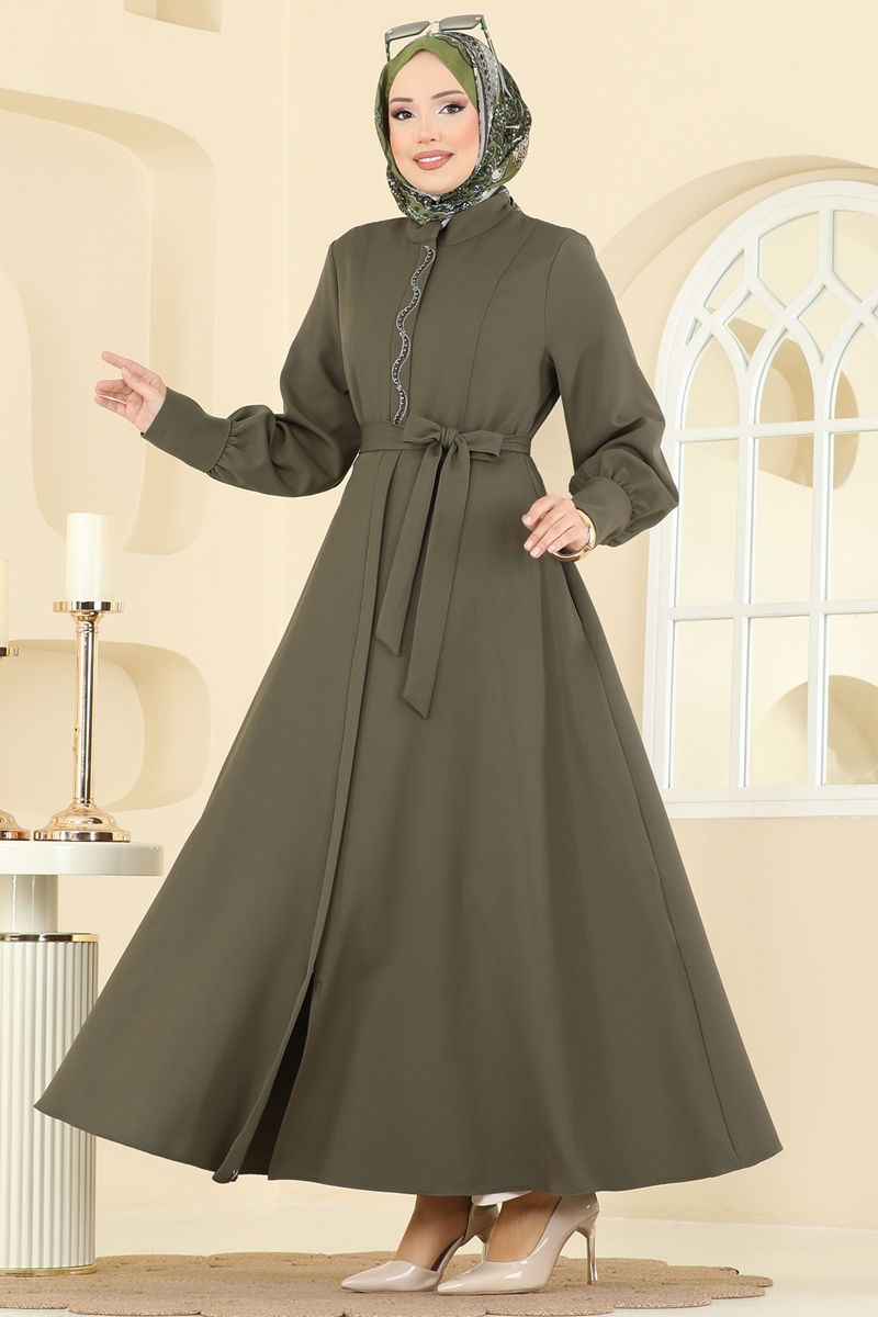 Product Feature : It is a new season hijab fashion product. The product has a Half Judge collar. Unlined. The product has a zipper at the From the front part. The stones are glued. There is no belt bridge on the product. This product is not a combo. Belt included, optional not available. Pocket available. Cuff buttons are active. There may be a tonal difference in the product due to concept photo shoots.