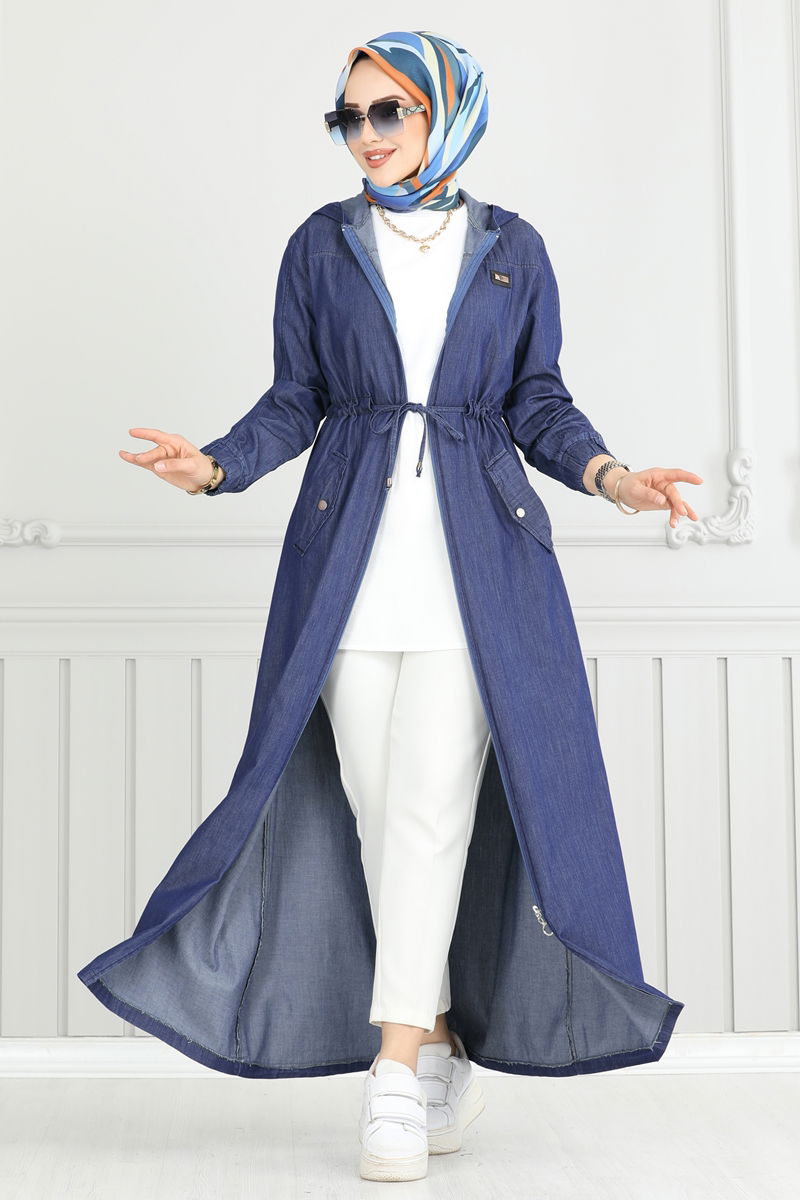 The Belt Tunnel Denim Ferace offers a modern and chic design as a model, holding a significant place in modest wear. It can be comfortably used throughout all seasons, made from Tencel denim material, providing durability and comfort together. The ferace can be washed delicately at 30 degrees Celsius. Its hooded design and front zipper offer practical usability. With its drawstring feature, you can adjust the fit around the waist. The ferace has elastic cuffs and functional pockets, making it ideal for both everyday and special occasions for those who seek comfort and elegance together.