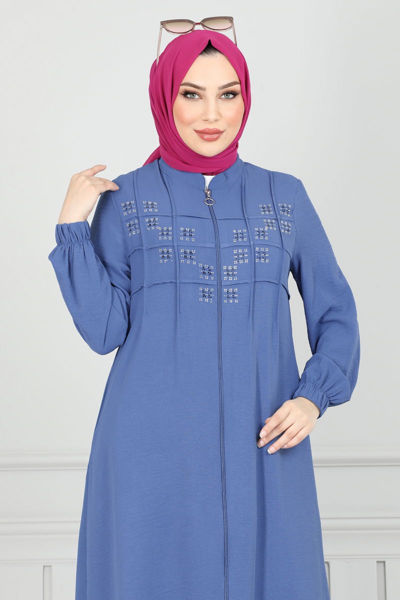 Product Feature : It is a new season hijab fashion product. The product has a Half Judge collar. Unlined. The product has a zipper at the From the front part. The stones are glued. Pocket available. The cuff is rubberized. There may be a tonal difference in the product due to concept photo shoots.
