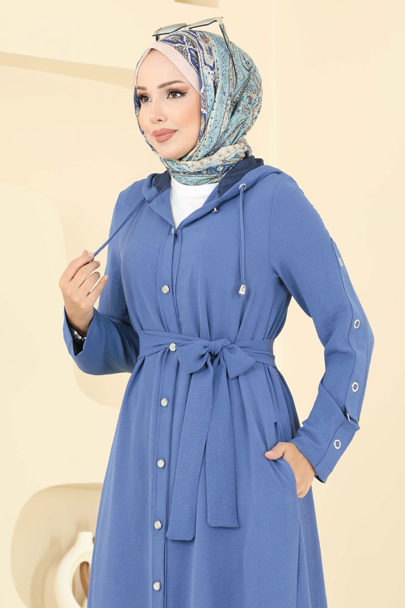 Product Feature : It is a new season hijab fashion product. My pocket knife has a bird’s eye rivet. The product has From the front buttons. Unlined. The hood is sewn to the product.The inside of the hood has mesh detail. Belt included, optional not available. There may be a tonal difference in the product due to concept photo shoots.