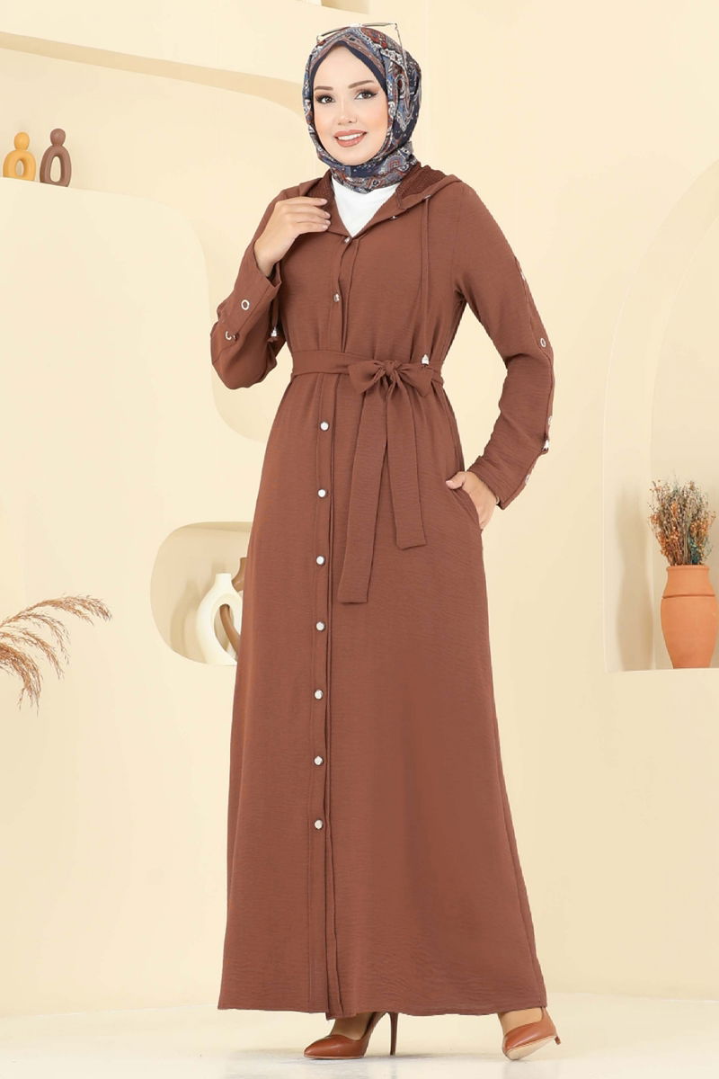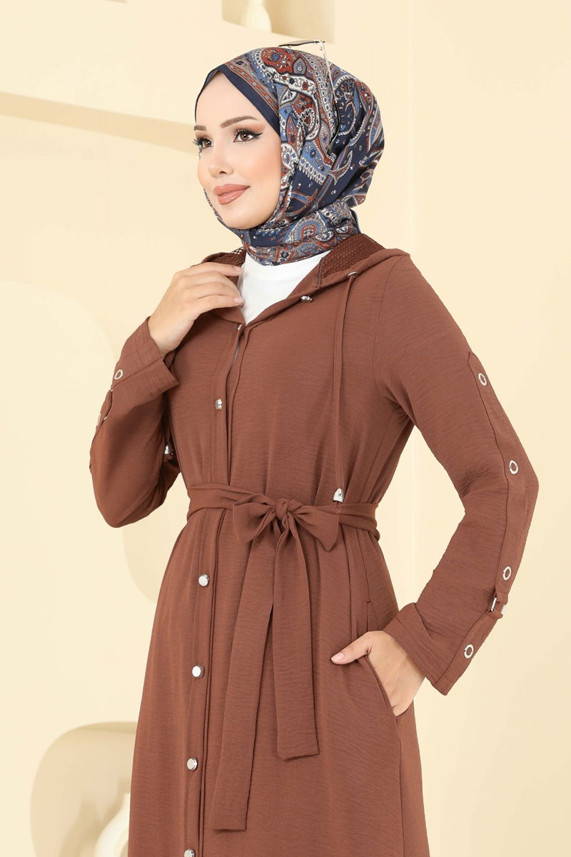 Product Feature : It is a new season hijab fashion product. My pocket knife has a bird’s eye rivet. The product has From the front buttons. Unlined. The hood is sewn to the product.The inside of the hood has mesh detail. Belt included, optional not available. There may be a tonal difference in the product due to concept photo shoots.