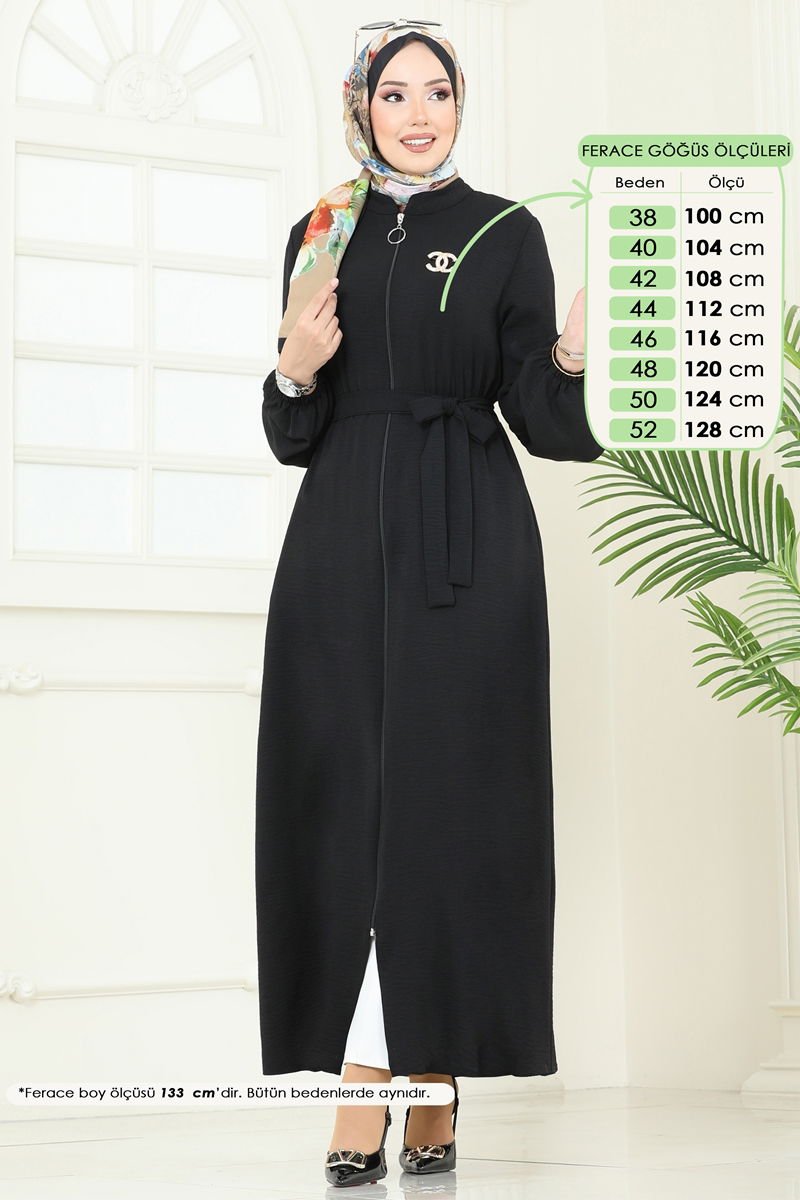 Light and Stylish: Ferace Model Hijab Coat! This coat, which can be used comfortably in all four seasons, is made from light, breathable Aerobin fabric. It offers practical use with its front zipper design and semi-standing collar. The product is unlined, with elastic at the waist and cuffs. The model is size 38, and its belted design provides a stylish silhouette. The Ferace coat is suitable for delicate washing and can be washed at 30 degrees. Ideal for both everyday use and special occasions!