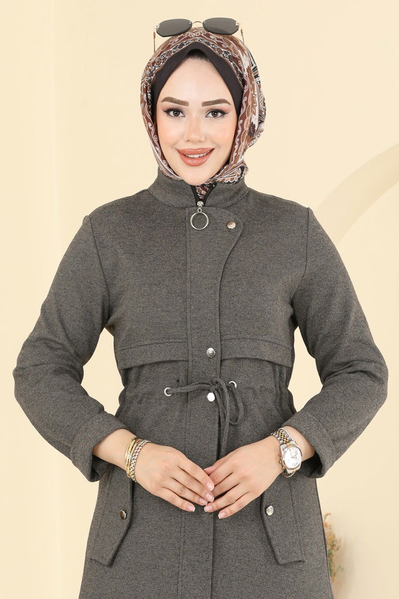 Product Feature : It is a new season hijab fashion product. It has a laced waist. The product has a Half Judge collar. The product has half front buttons. Unlined. The product has a zipper at the From the front part. Pocket details are accessories. There may be a tonal difference in the product due to concept photo shoots.