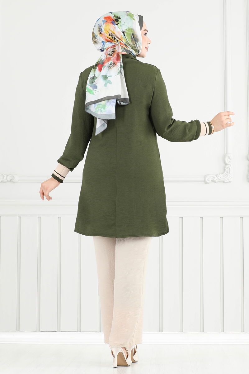 Ürün Tanımı : Yeni sezon tesettür giyim tarzına uygun olarak tasarlanmıştır. Ürün sırttan düğmeli olarak kullanıma sahiptir. Hakim yaka tasarımına sahiptir. Tunik yanlarda yırtmaç detayları ile hareket özgürlüğü sunar. Astar içermemektedir. Bağcıklar dekoratif bir aksesuar niteliğindedir.Renk tonlarında fotoğraf çekimi sebebiyle farklılıklar görülebilir.