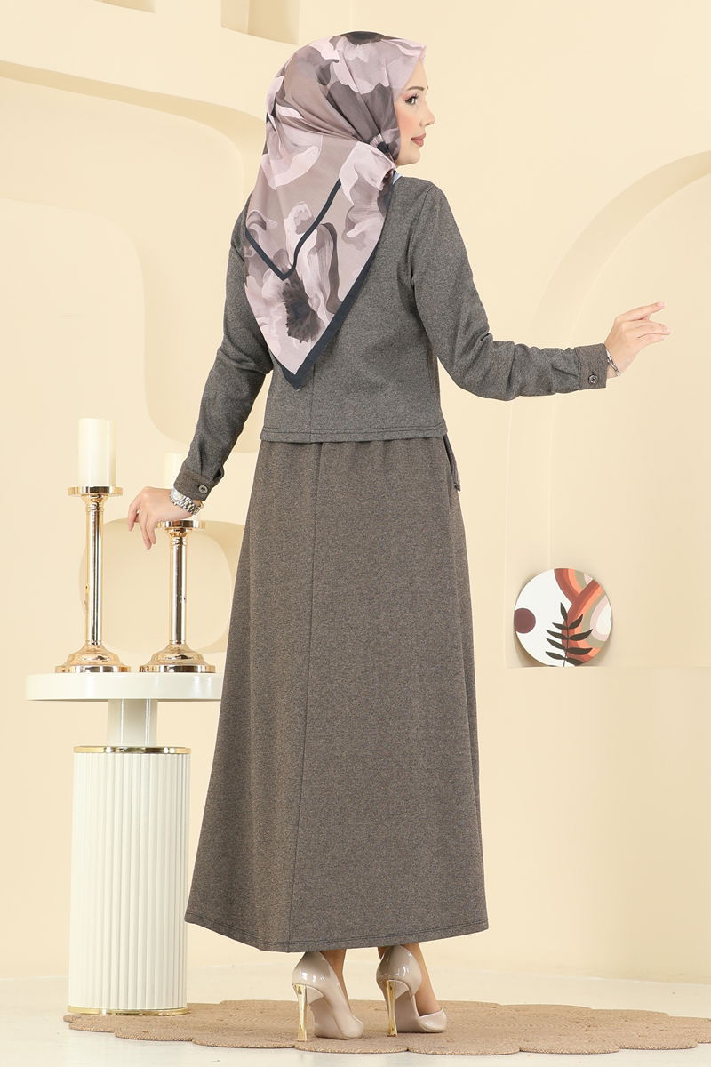 Kahve Rengi Etek Ceket Takımı & Vizyon Stili