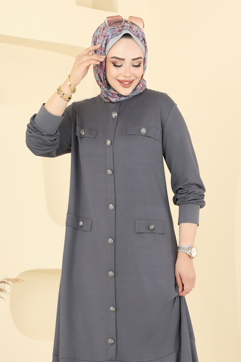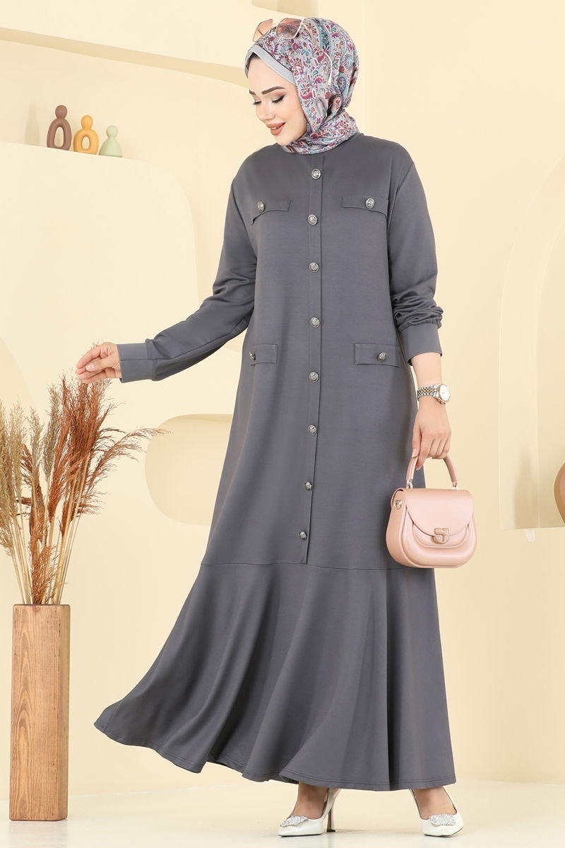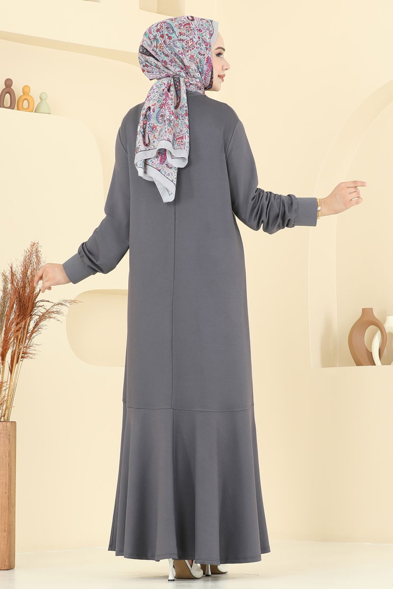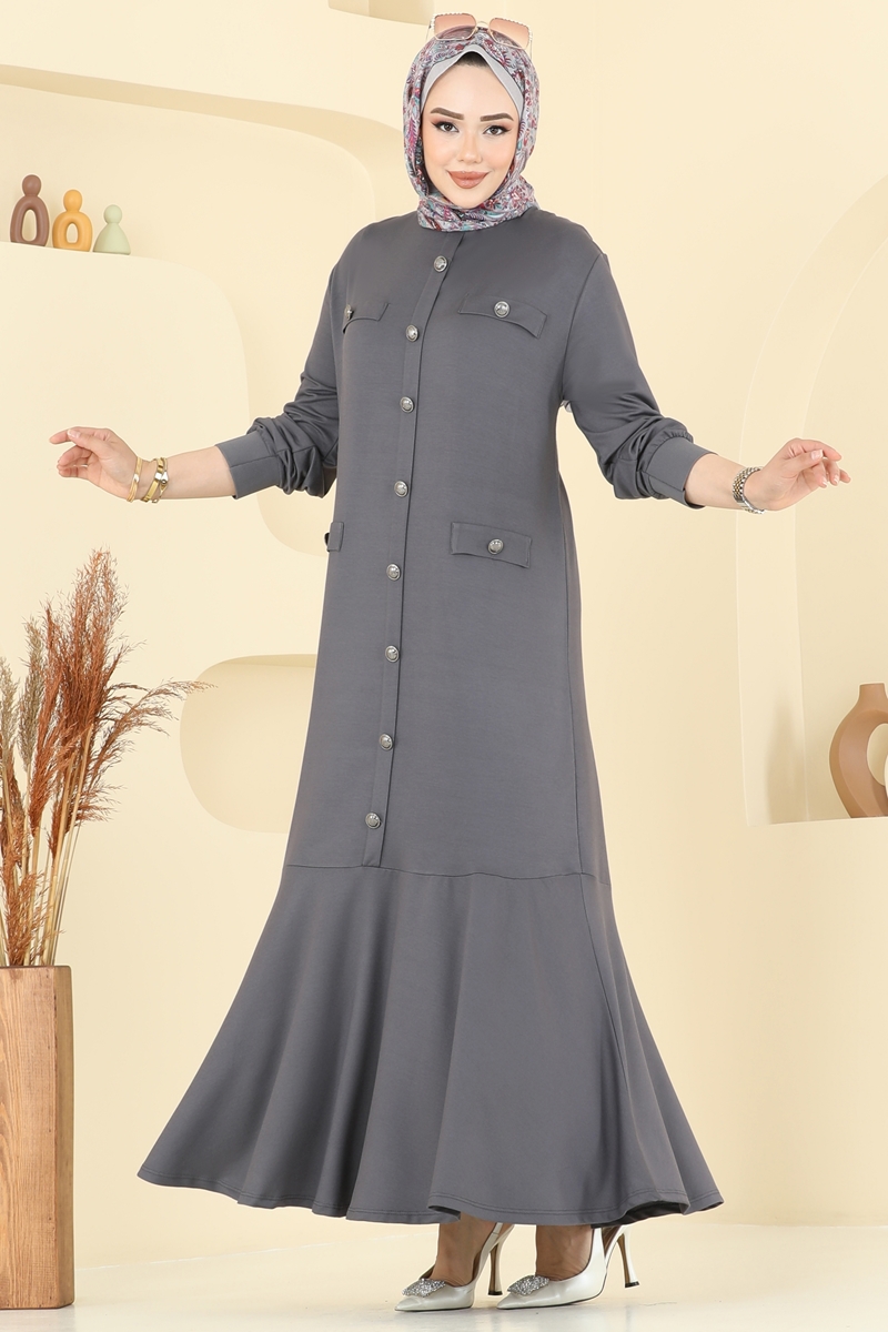 Aksesuar Cepli Tesettür Elbise 3315UZ662-MS Gri