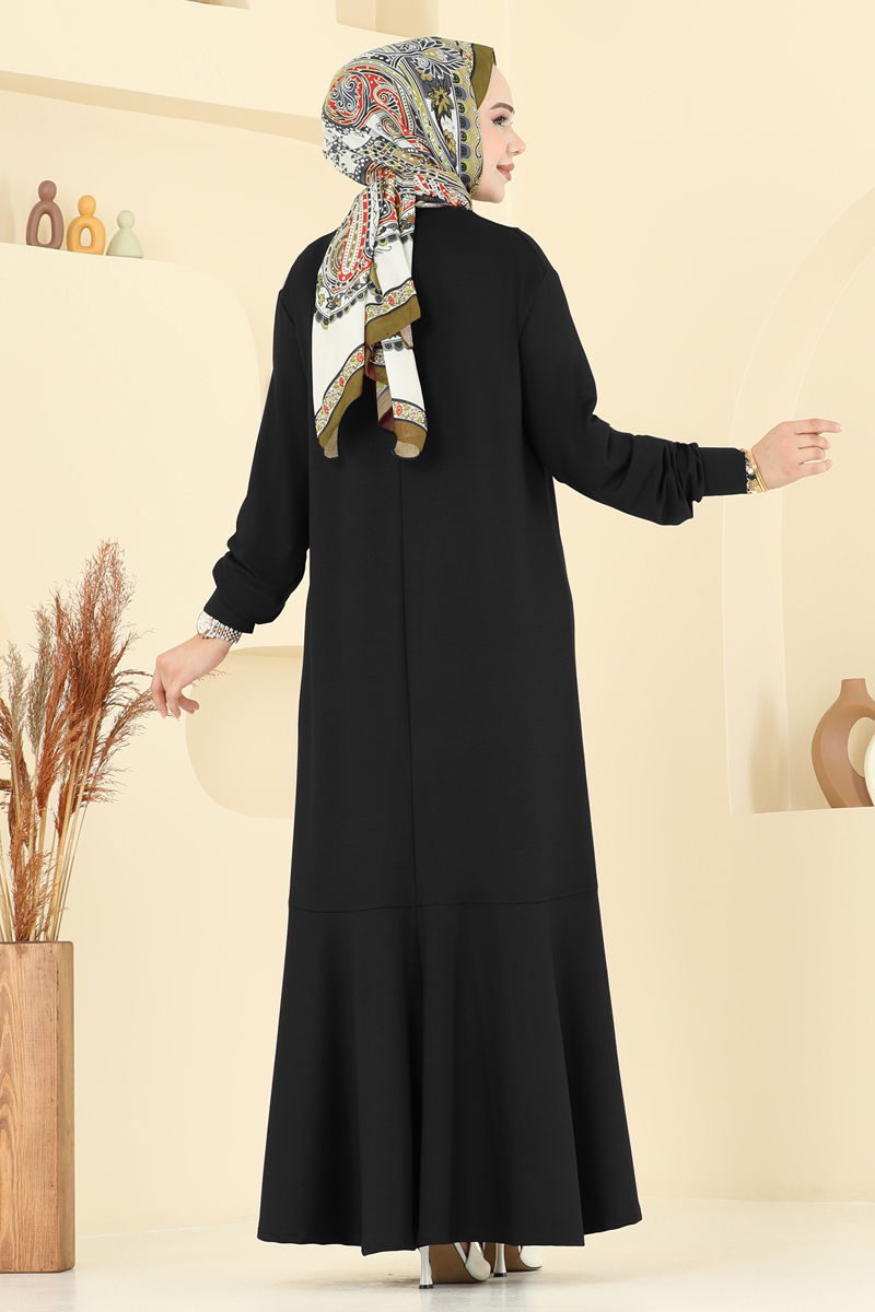 Aksesuar Cepli Tesettür Elbise 3315UZ662-MS Siyah