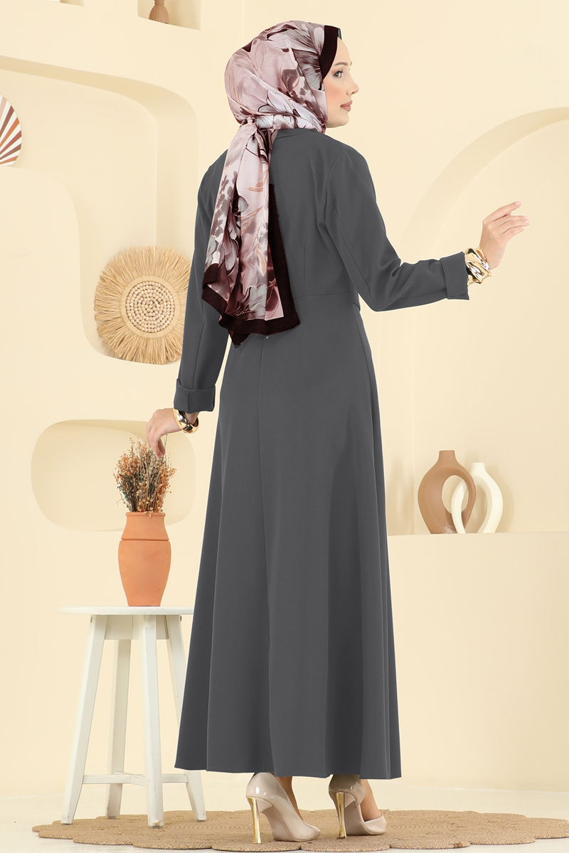 Aksesuar Düğmeli Dabıl Elbise 2746SL432-MS Antrasit