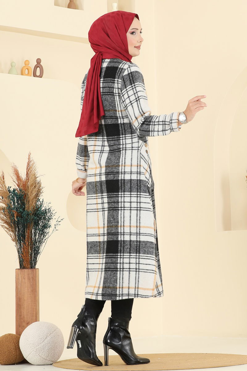 Aksesuar Düğmeli Ekose Tunik 6899S324-MS Siyah