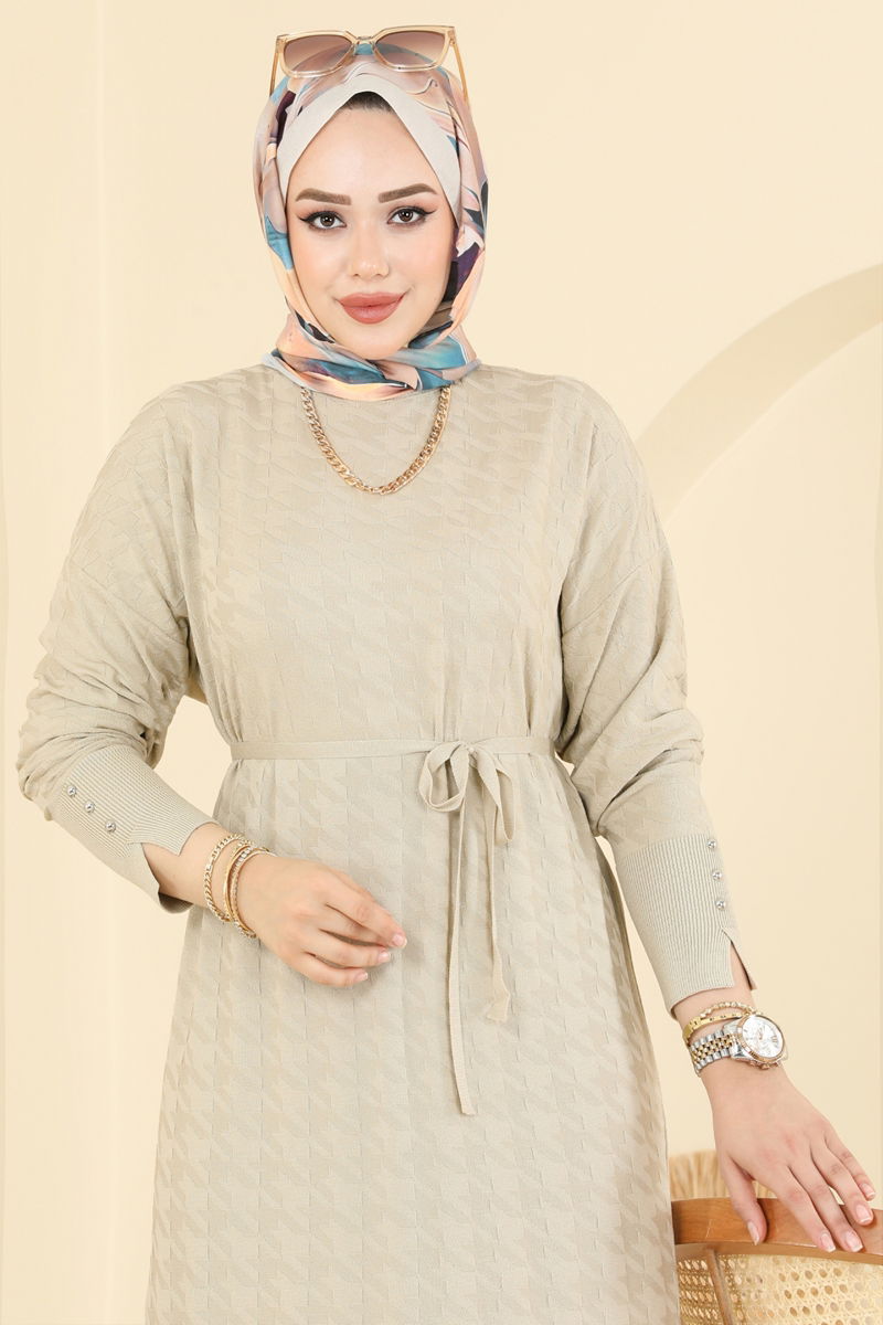Aksesuar Düğmeli Merserize Elbise 241420TPK1167-MS Taş