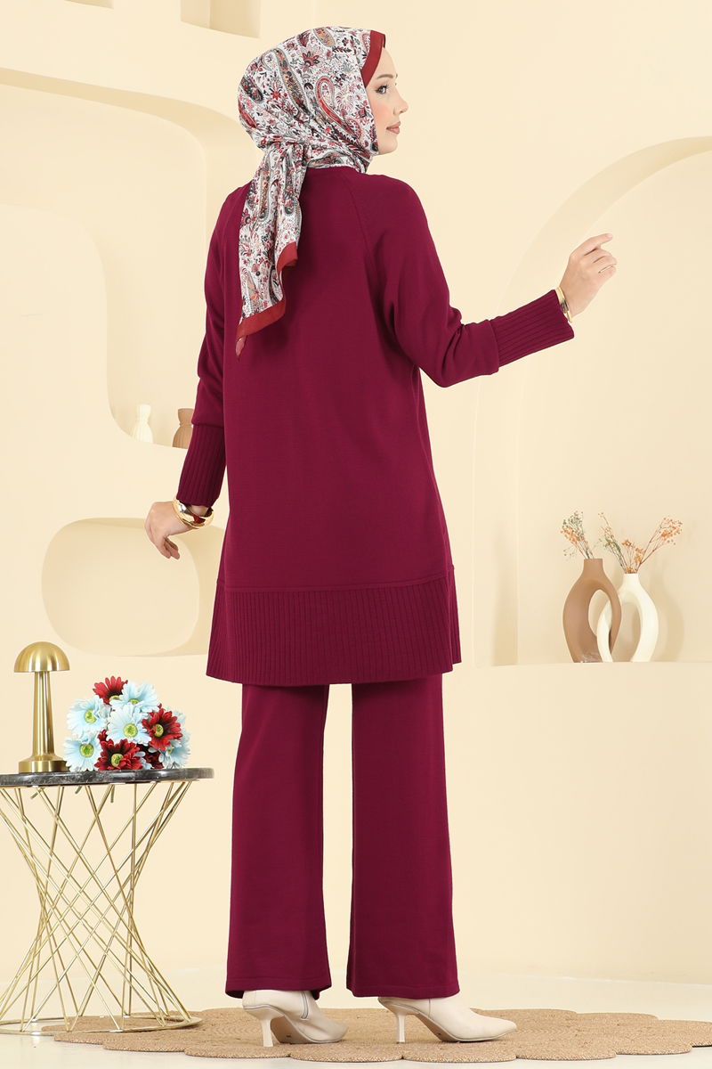 Aksesuar Düğmeli Triko Takım 2723AYD574-MS Bordo