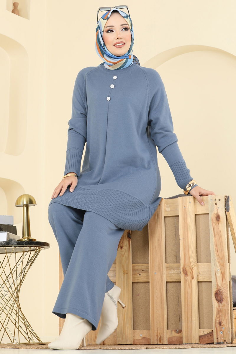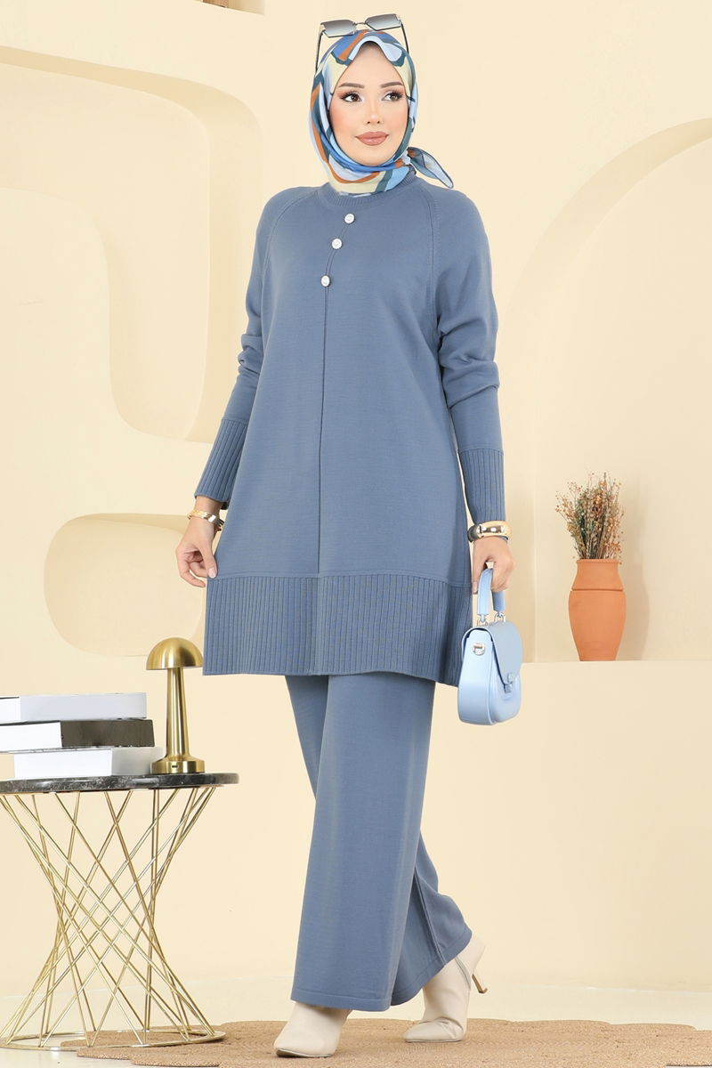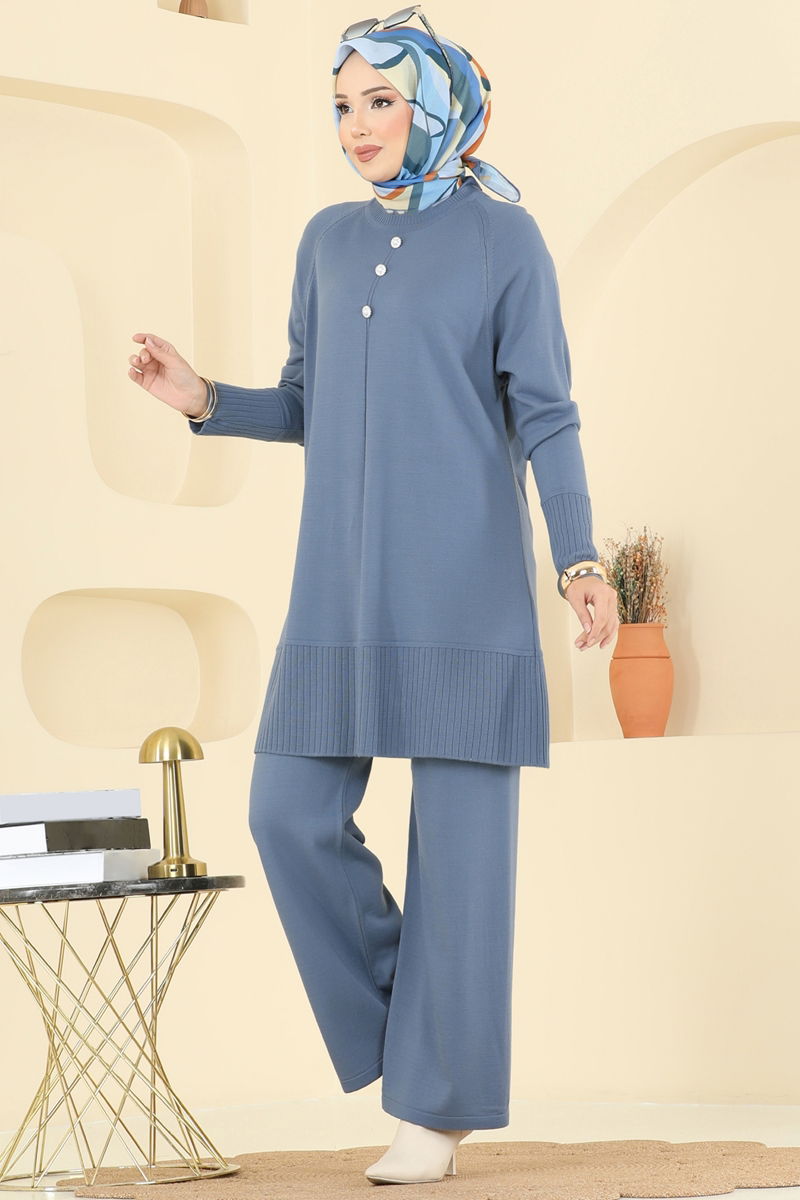 Aksesuar Düğmeli Triko Takım 2723AYD574-MS İndigo