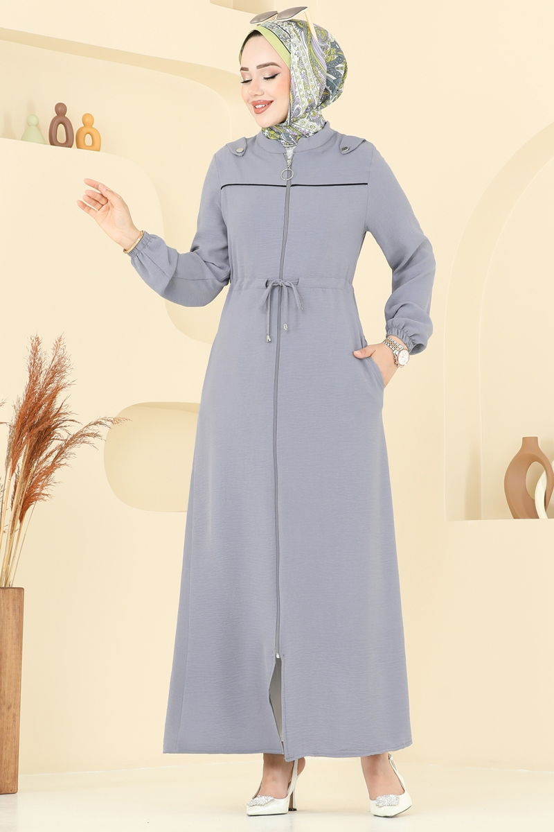 Apolet Düğmeli Pardesü Ferace PL9150-MS Gri