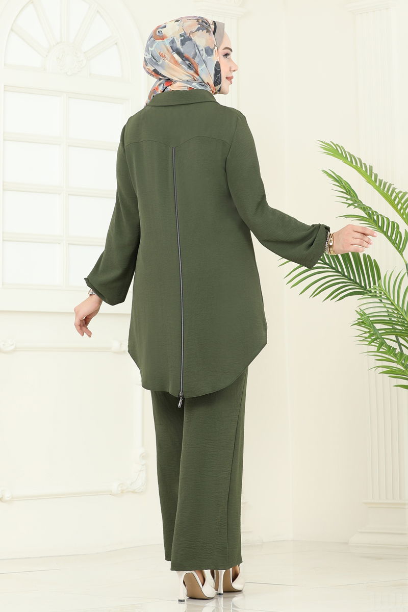 Arkadan Fermuarlı Tesettür Takım 2717SL432-MS Haki