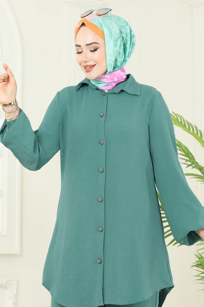 Arkadan Fermuarlı Tesettür Takım 2717SL432-MS Koyu Mint