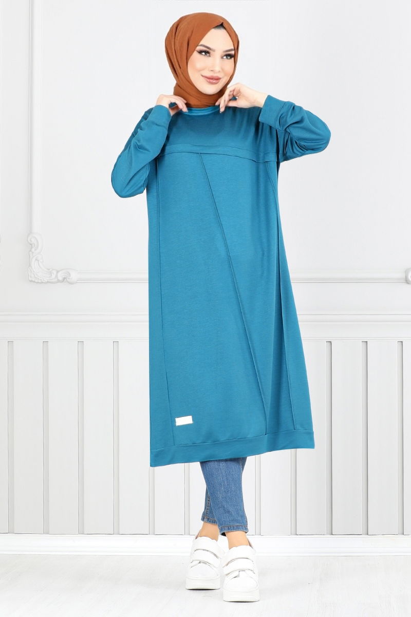 Arma Detail Hijab Tunic PetrolKumas Feature: It is made of Crystal and Two-Thread fabric. It can be used in Four Seasonal seasons. Product Feature: New season hijab is a fashion product. The product is a bicycle collar. The tunic has a slit on the side.. It is unlined. The rigging detail is sewn.There may be a tonal difference in the product due to concept photo shoots. Washing : IT CAN BE WASHED WITHOUT TIGHTENING AT 30 DEGREES.(DELICATE WASHING) (The product on the model is size 38.)Weight (Kg):0.53