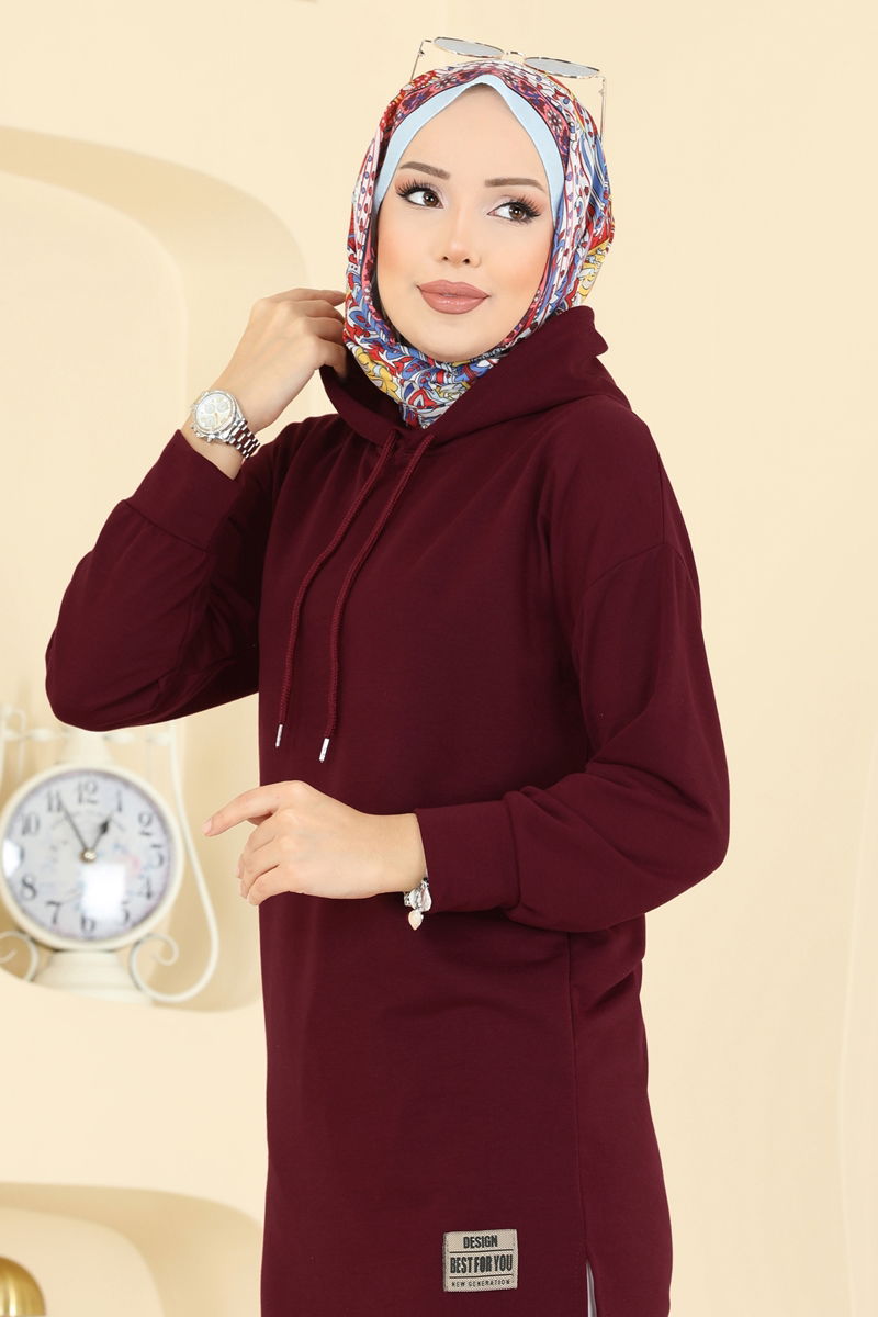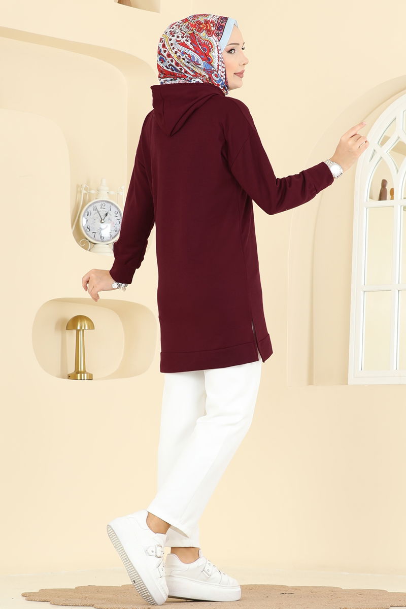 Arma Detay Kapüşonlu Tunik 1000ETT926-MS Bordo