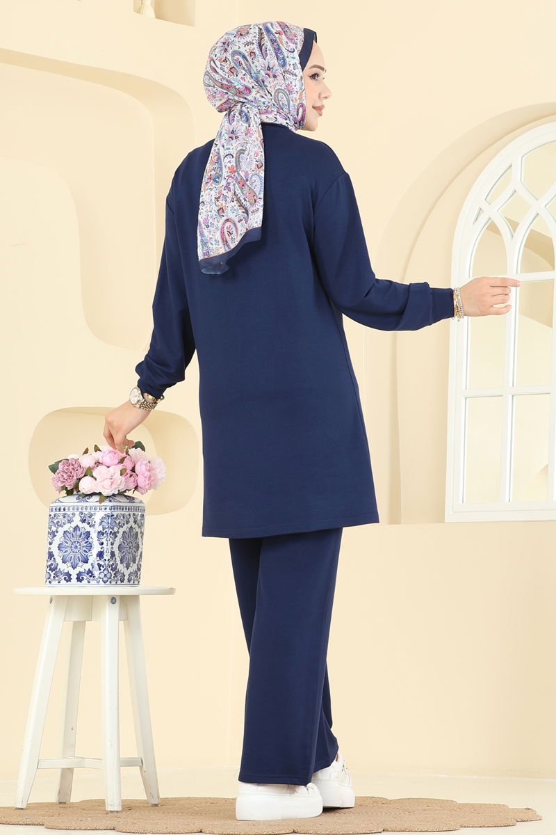Arma detaylarıyla ve şık tasarımıyla göz dolduran bu spor kombin, kristal kumaşın sağladığı rahatlıkla her mevsim kullanıma uygun. Tesettür kesimli bu ürün, hafif yapısıyla rahat bir kullanım sunarken, elastik beli sayesinde gün boyu konfor sağlar. Hem günlük kullanım hem de özel etkinlikleriniz için ideal bir tercihtir.
