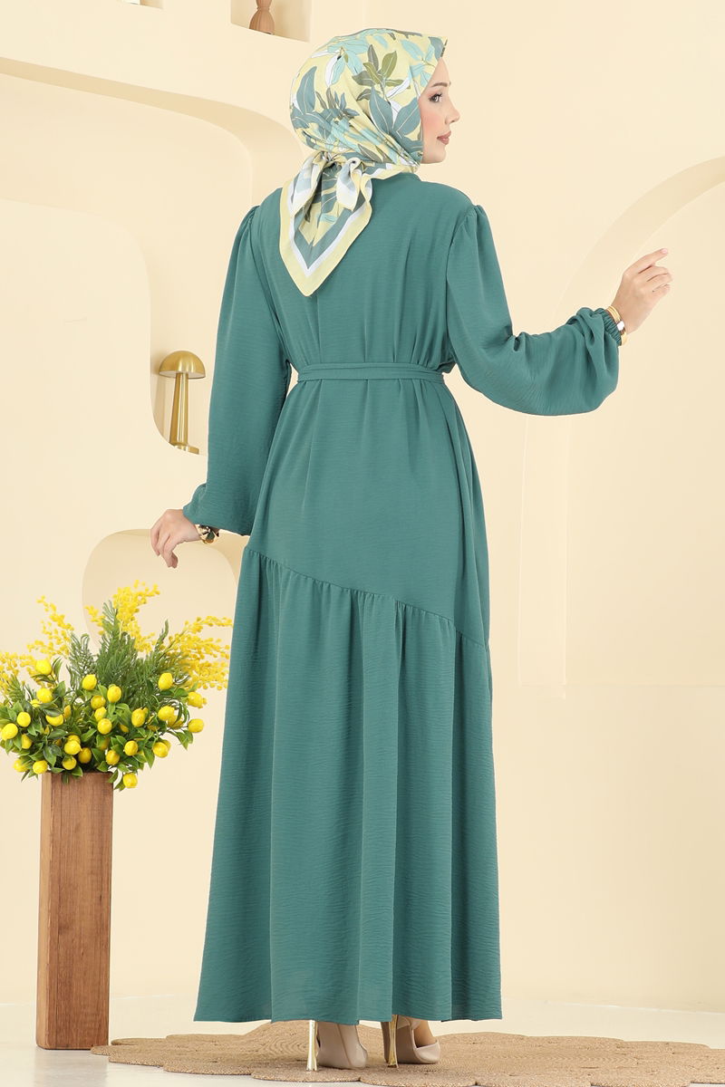 Mint Renkli Aerobin Kumaş Asimetrik Elbise