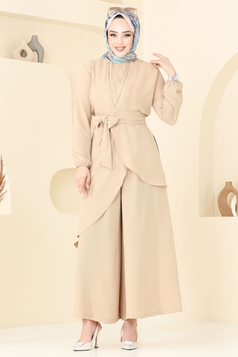 Asimetrik Kesim Tesettür Takım 4743ZNK1009-MS Taş