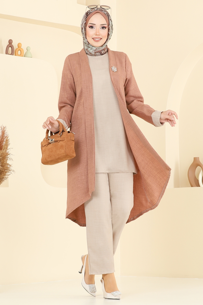 Asimetrik Kesim Üçlü Takım 3129HBS856-MS Latte&Taş