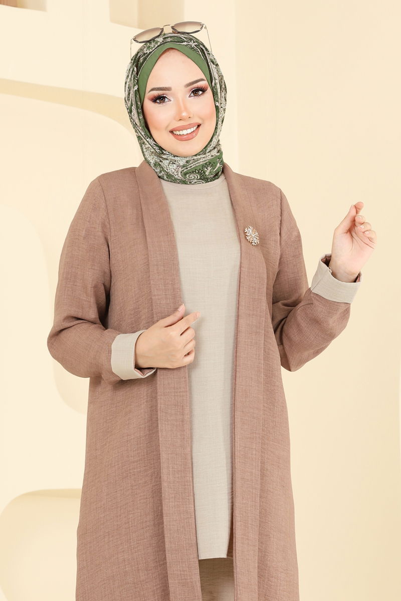 Ürün Detayı : Yeni sezon tesettür giyim tasarımıdır. Arka kısmında kullanılabilir bir düğme bulunur. Bisiklet yakalıdır. Astarsızdır. İç tunik kolsuzdur. Pantolon beli lastiklidir. Konsept çekimlerden dolayı ton farklılığı olabilir.