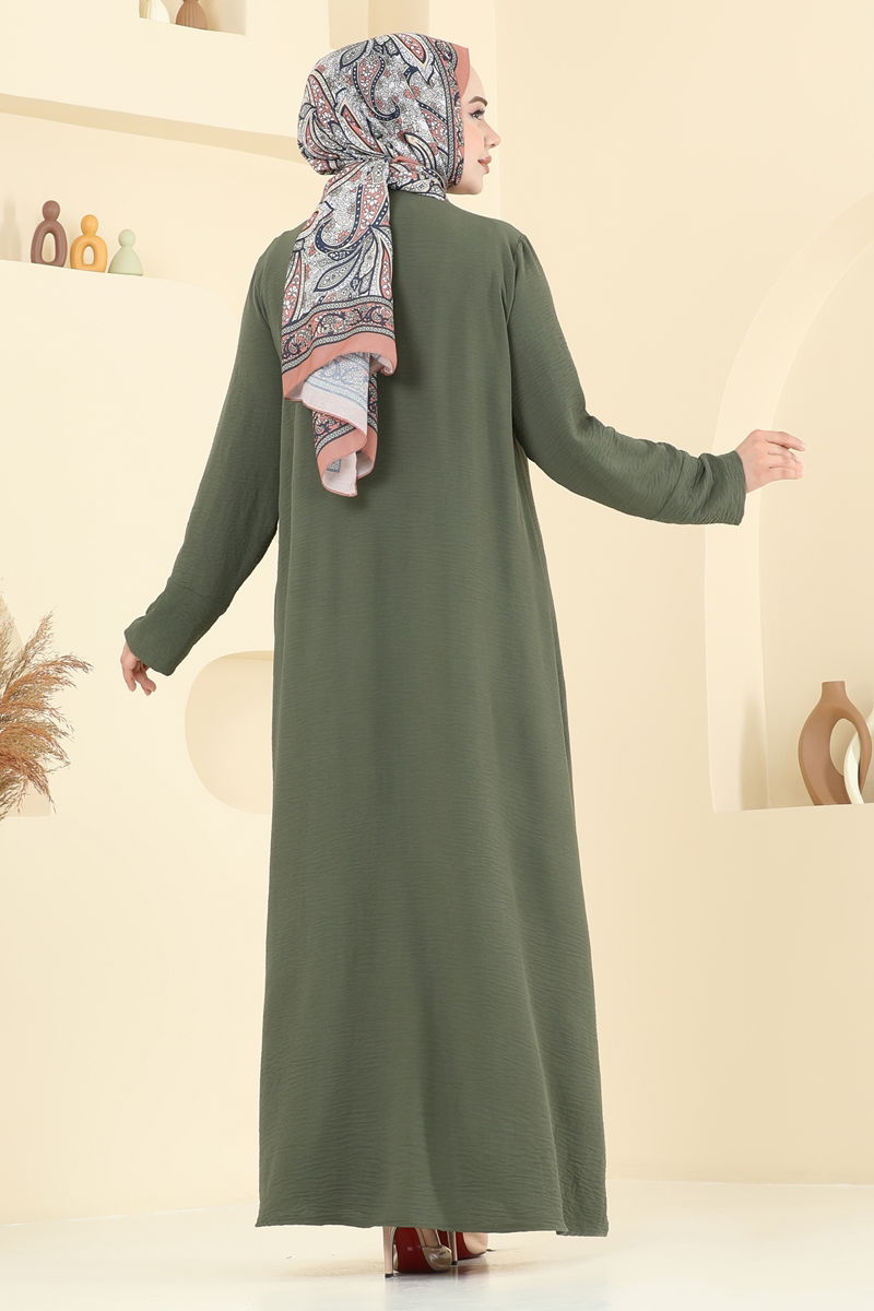 Aerobin Kumaşlı, Bağcık Detaylı Ferace - Haki Renk