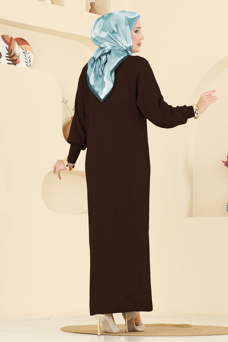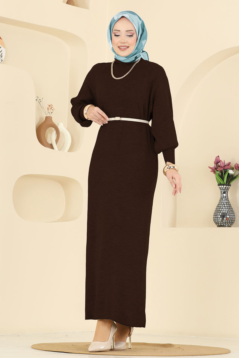 Balon Kol Detaylı Elbise 2764AYD574-MS Kahve