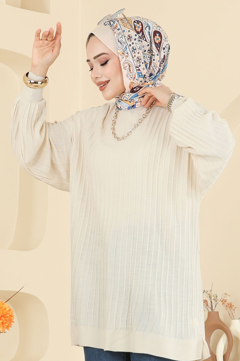 Balon Kol Triko Tunik 2199UZ662-MS Taş