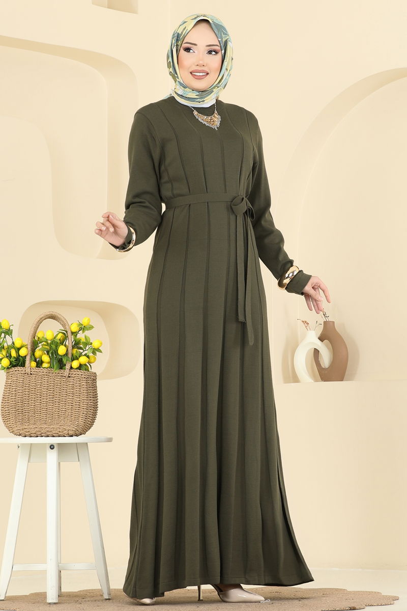 Beli Bağcık Detaylı Elbise 004MT581-MS Haki