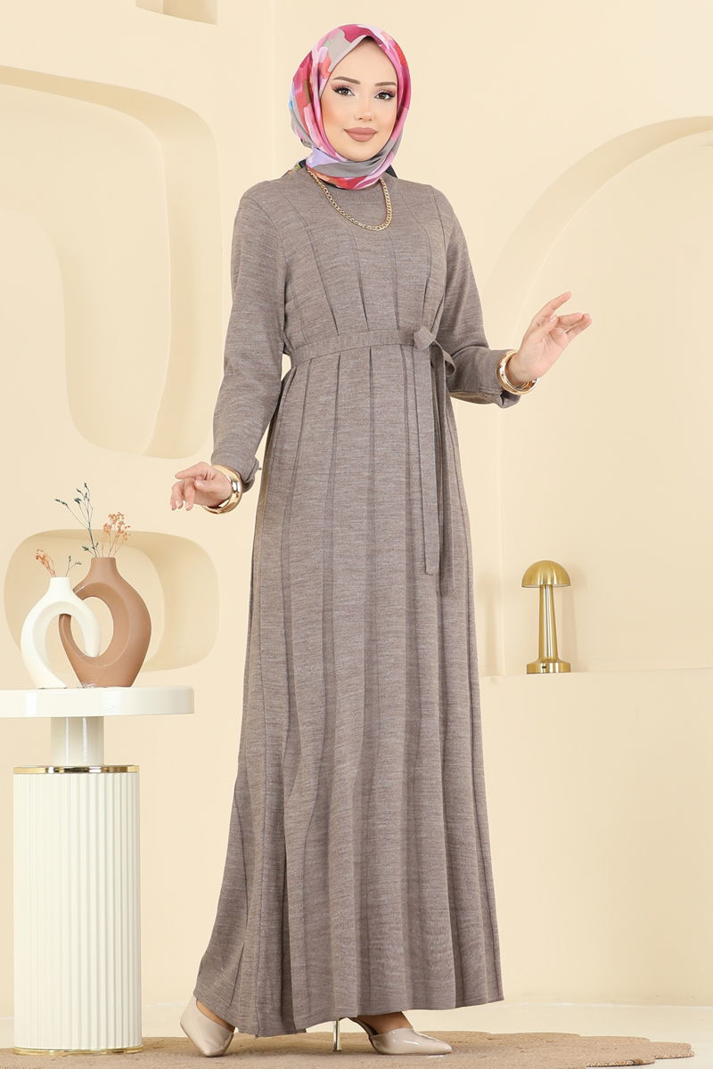 Beli Bağcık Detaylı Elbise 004MT581-MS Koyu Vizyon