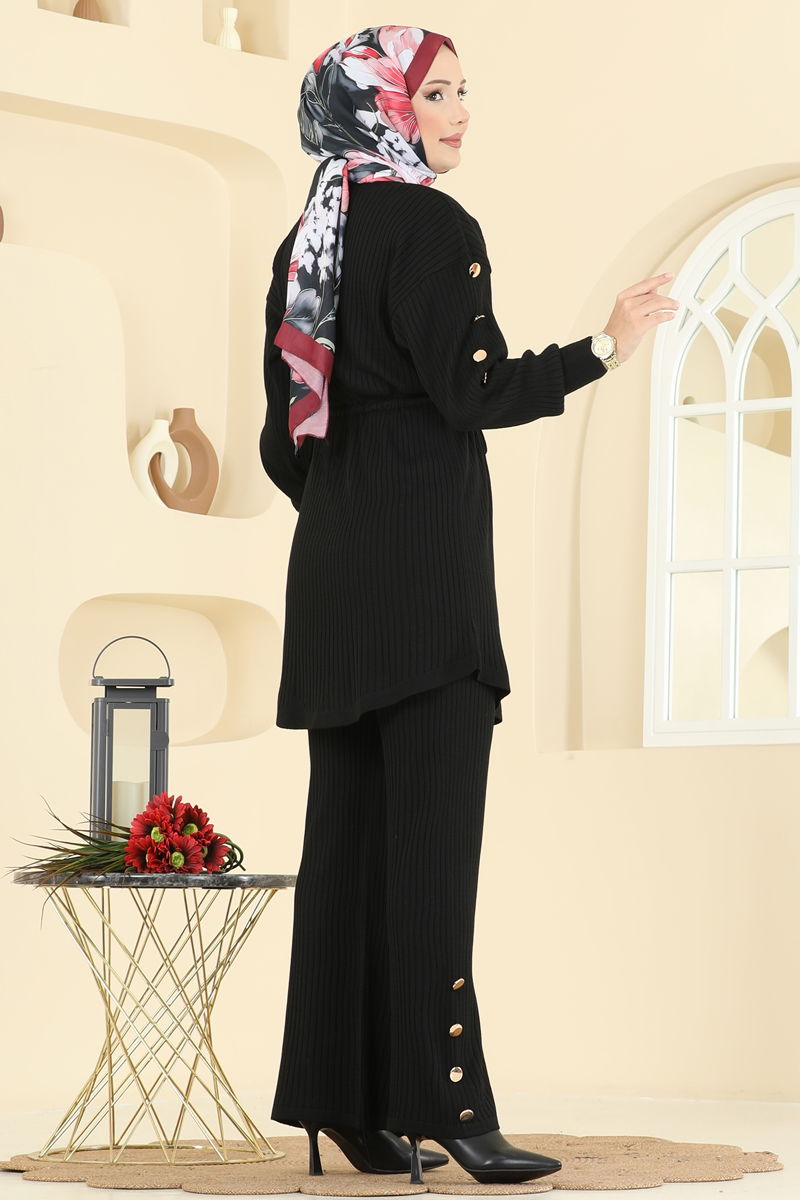 Beli Bağcıklı Triko Takım 2746AYD574-MS Siyah