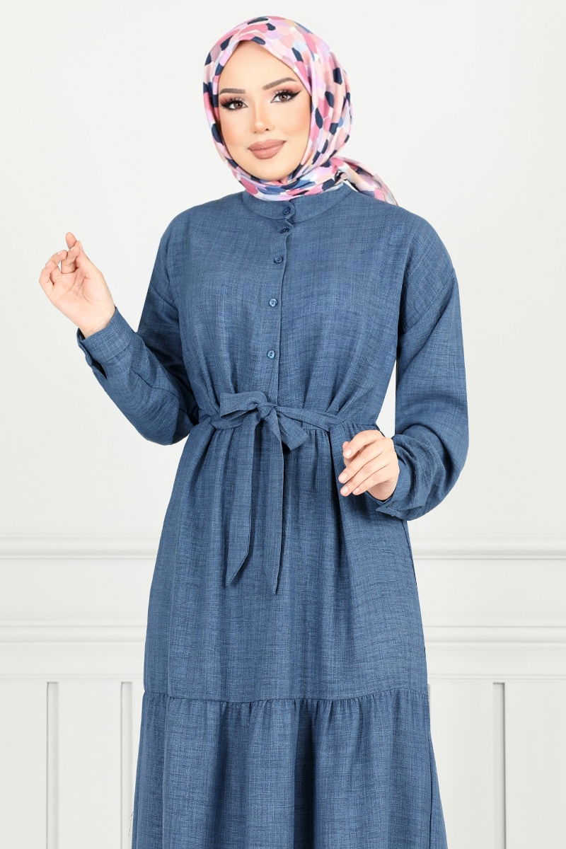 Beli Bağlamalı Elbise 16162BSK984-M İndigo