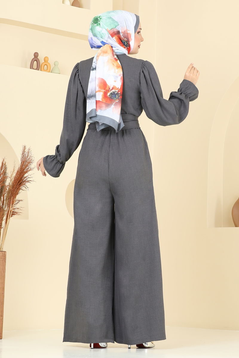 Beli Bağlamalı Antrasit Sofia Keten Tulum, tüm sezonlarda tercih edebileceğiniz, tesettüre uygun bir modeldir. Sofia keten malzemeden üretilip, yaz sıcaklarında bile serinlik hissi verir. 30°C'de hassas yıkama ile kolayca temizlenebilen bu tulum, kullanışlı olmasıyla ön plana çıkar. Bisiklet yakası ve arkadan fermuarlı yapısıyla modern bir stil sunar, yan bağlama kemeri ile her bedene uygunluk sağlar. Lastikli manşetleriyle şıklığınıza şıklık katarken, gardıropların olmazsa olmazları arasındadır.TULUM ÇEŞİTLERİ BEDEN ÖLÇÜLERİ (CM)Beden Göğüs Boy 38 96 144 40 100 144 42 104 144 44 108 144 46 112 144 48 116 144 Ağırlık(Kg):0.52 -