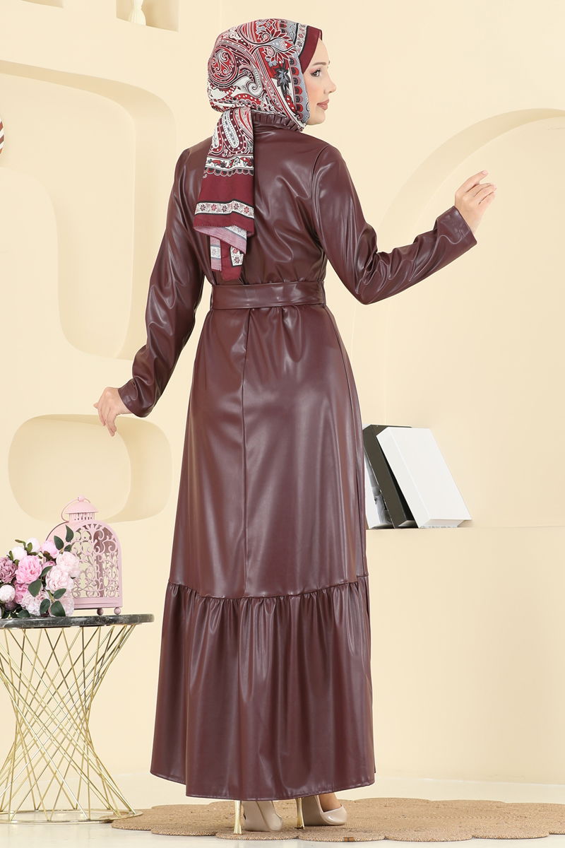 Beli Kemerli Deri Elbise 5285AL357-MS Bordo
