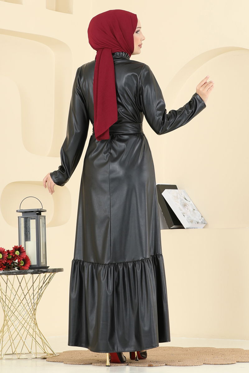 Beli Kemerli Deri Elbise 5285AL357-MS Siyah