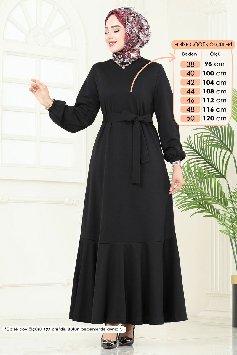 Beli Kemerli Mira Elbise 23028UKB139-MS Siyah