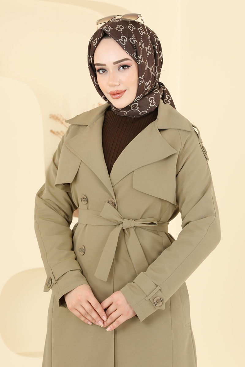 Beli Kuşaklı Cepli Trençkot 6248BSK463-MS Çağla
