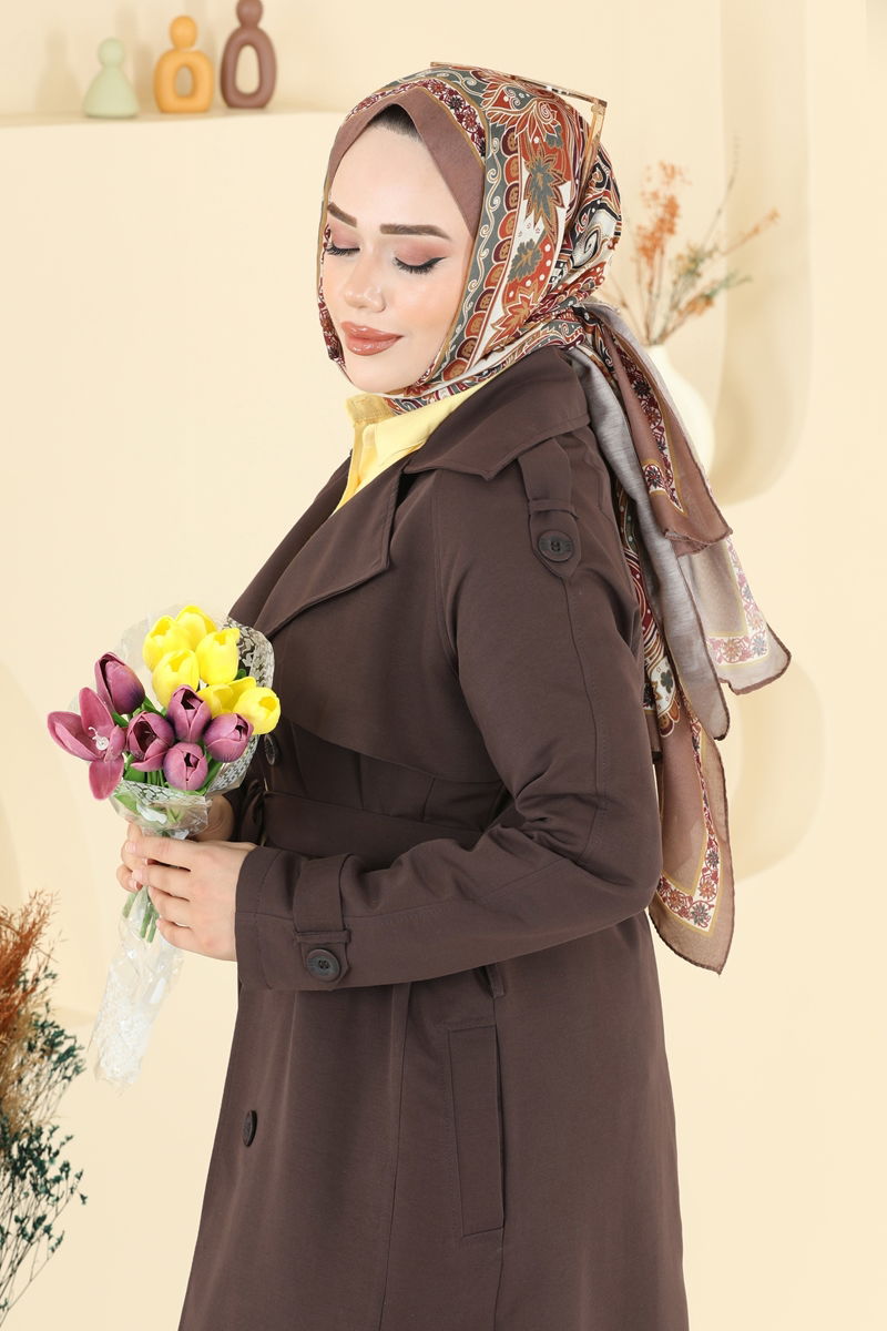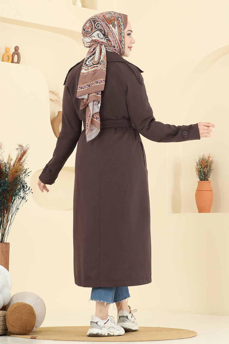 Beli Kuşaklı Cepli Trençkot 6248BSK463-MS Kahve