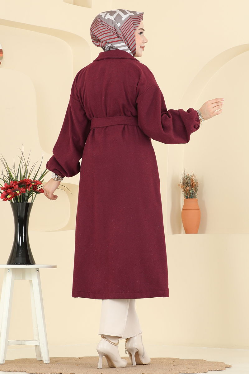 Beli Kuşaklı Kaşe Kaban 2059ERK1158-MS Bordo