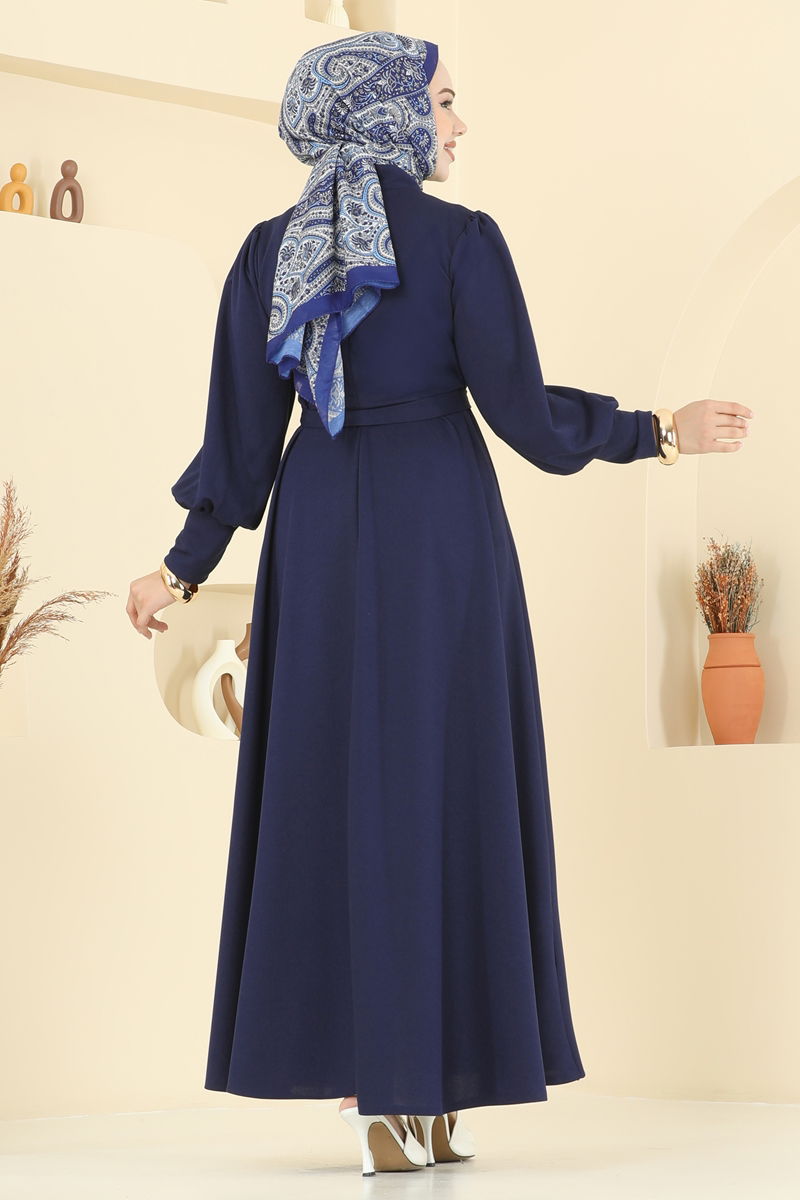 Elbise Özellikleri : Tesettür moda tasarımıdır. Modeli hakim yakadır. Sırt kısmında fermuar mevcuttur. Bel kısmı dikiş detayına sahiptir. Kemer elbiseyle birlikte gelir, kişisel tercihe göre çıkarılabilir.Fotoğraf çekimlerine bağlı olarak üründe renk farklılıkları görülebilir.