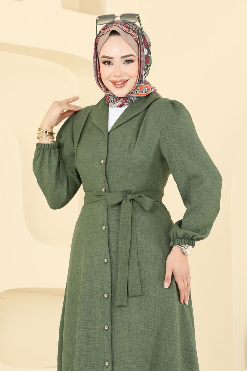 Beli Kuşaklı Sofia Elbise 9162PLK541-MS Haki