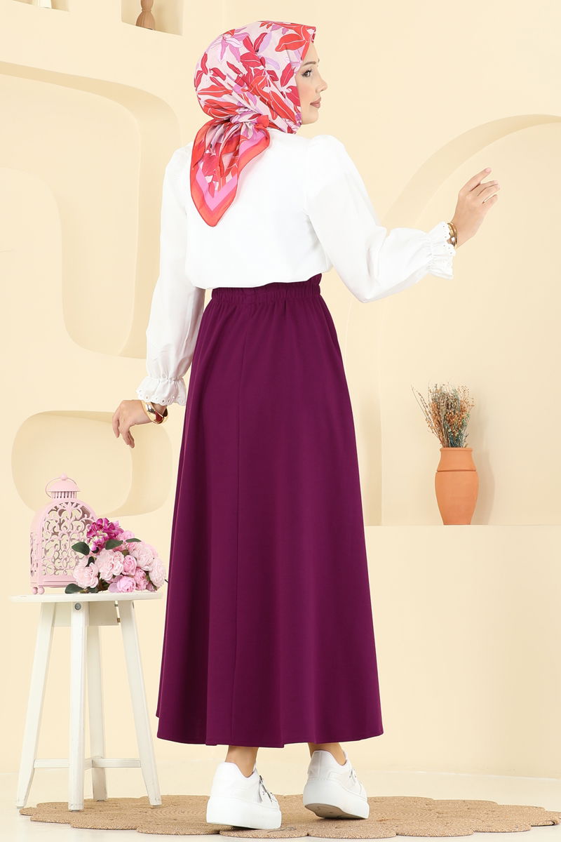 Beli Lastikli Örme Etek 5014ERK1158-MS Mürdüm